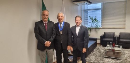 Nesta quinta-feira (29), o desembargador Octavio Boccalini, presidente do TRE, recebeu das mãos do presidente do Tribunal de Justiça Militar do Estado de Minas Gerais (TJMMG), desembargador Rúbio Paulino Coelho, o Colar do Mérito Judiciário Militar, outorgado no ano de 2023. A entrega ocorreu no gabinete da presidência do Tribunal de Justiça Militar, em Belo Horizonte.